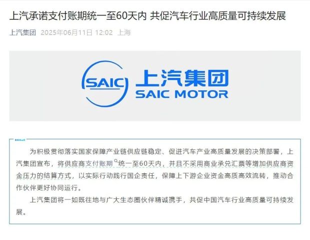 北汽和上汽不僅宣佈60天供應商賬期,還承諾“全面取消商業承兑匯票等增加供應商資金壓力的結算方式”。