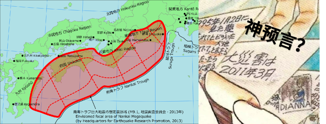 這麼看來,關於日本大地震的估算由來已久,而且概率在緩慢上升。但是最近飛往日本的一些航班預訂量大幅下降,有人將這種變化與日本圖像小説《我所看見的未來》聯繫了起來,這部小説改編自作者Ryo Tatsuki的“預知夢”。
