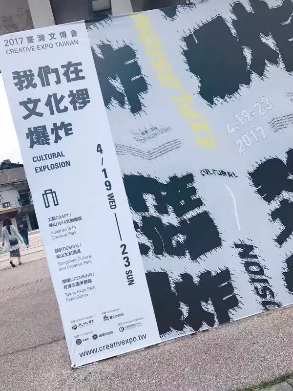 每每有來台北旅行的朋友,我都會帶着友人去一次華山文創。我跟詩文去華山的那天,剛好趕上2017文博會的活動,來到華山門口就看到赫然樹立着「我們在文化裏爆炸」的展板。