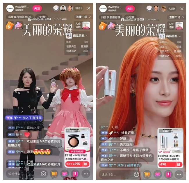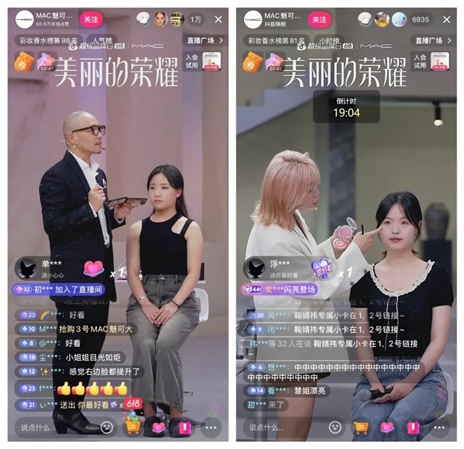 抖音MAC直播間很快接住了這波熱度,#美麗的榮耀直播話題詞緊隨其後進入大眾視野。誰懂這妝才爆就有官方直播安排上了的救贖感?