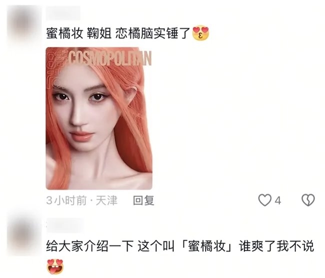 視頻發佈當日,#跟鞠婧禕用蜜橘妝打開夏天很快登上抖音熱榜Top6。評論區聽取誇聲一片,“鞠式美學”再次在抖音站內掀起仿妝狂潮。