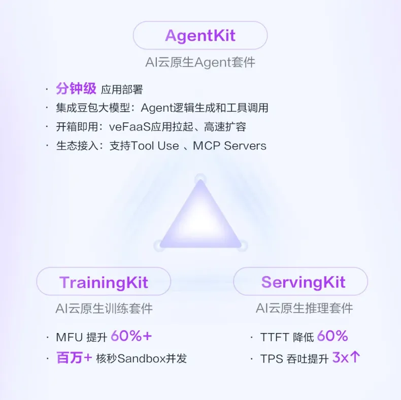 AgentKit、TrainingKit和ServingKit,助力企業做好智能體服務、模型訓練和模型推理;多模態數據湖、Data Agent,助力企業構建智能化、高效化、低成本的智能體數據體系;AICC 密態計算、大模型應用防火牆,助力企業構築網絡安全防線,抵禦針對智能體的惡意攻擊……