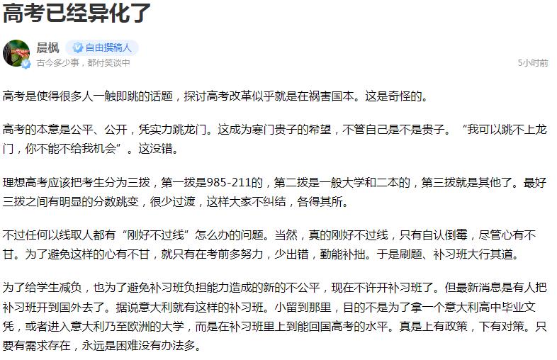 再評晨楓:《高考已經異化了》_風聞