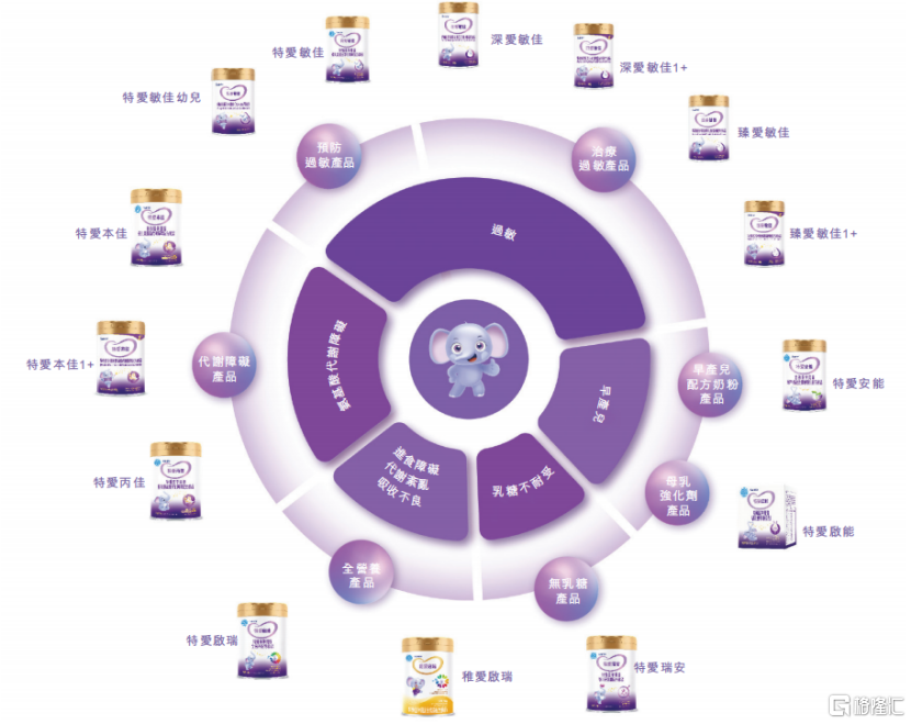 聖桐特醫目前已推出五條特醫食品產品線,即:1、過敏防治產品;2、早產兒產品;3、無乳糖產品;4、全營養產品;5、代謝障礙產品。