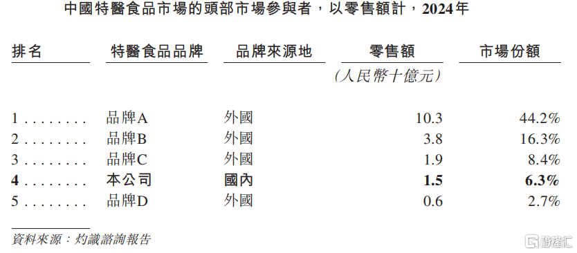 中國特醫食品市場的頭部市場參與者,2024年,來源:招股書