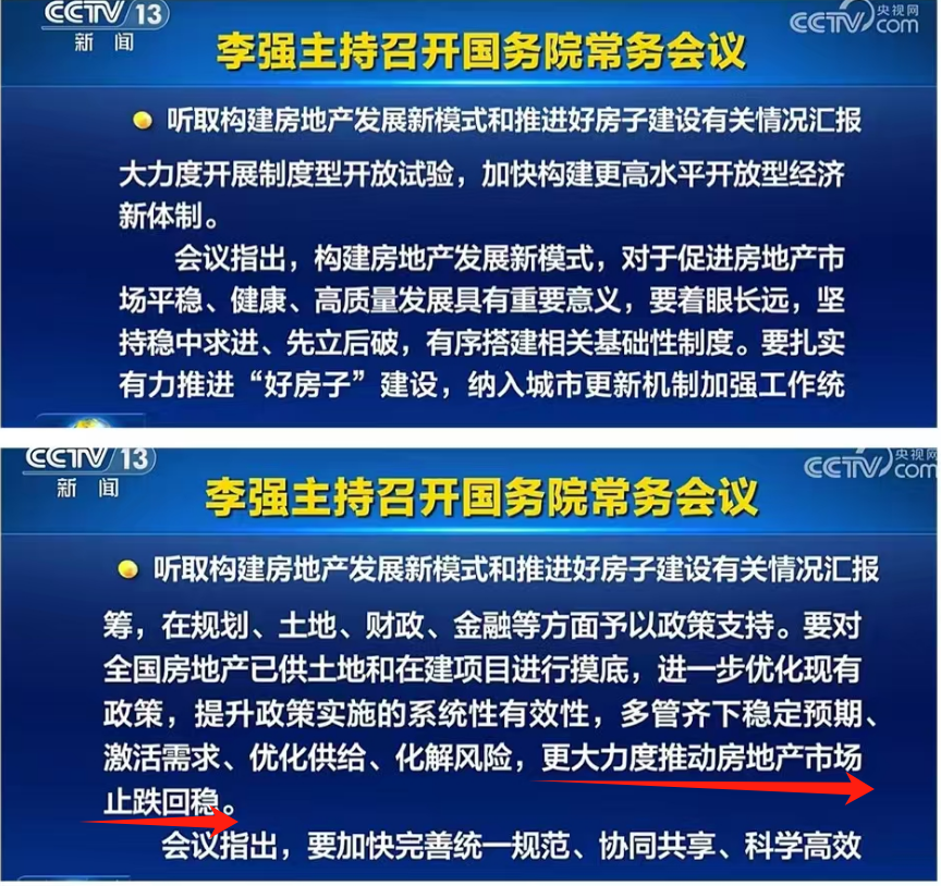 主要是因為這句:更大力度推動房地產市場止跌回穩