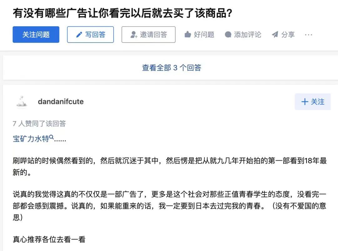 知乎上曾有人問,“有沒有哪些廣告讓你看了就想買?”高贊回答第一就是寶礦力水特。
