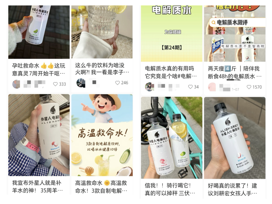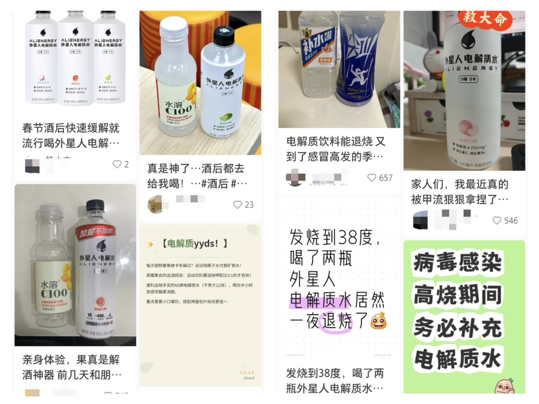 一些高階玩家,解鎖出電解質水的各種隱藏技能,用電解質水減肥、治痛經、調酒等帖子,髮網上就是流量密碼。