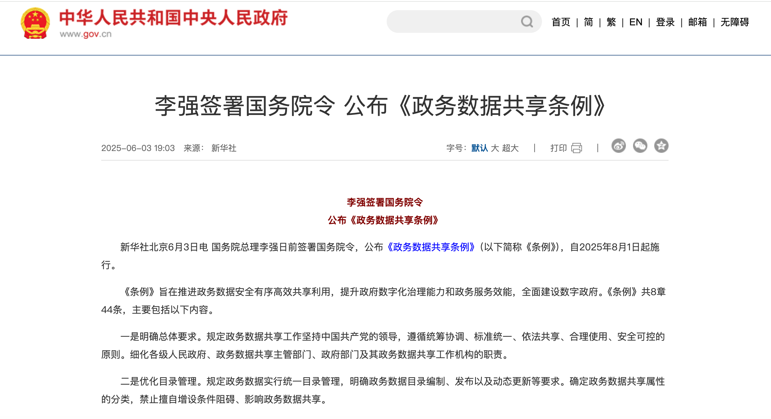 如今,中國政務數據共享的破壁時刻來臨!2025年6月,國務院《政務數據共享條例》(以下簡稱:《條例》)正式發佈。《條例》圍繞“統籌協調、標準統一、依法共享、安全可控”四大原則,提出構建全國一體化政務大數據體系的目標。此舉標誌着中國政務數據共享邁入體系化發展的新紀元。