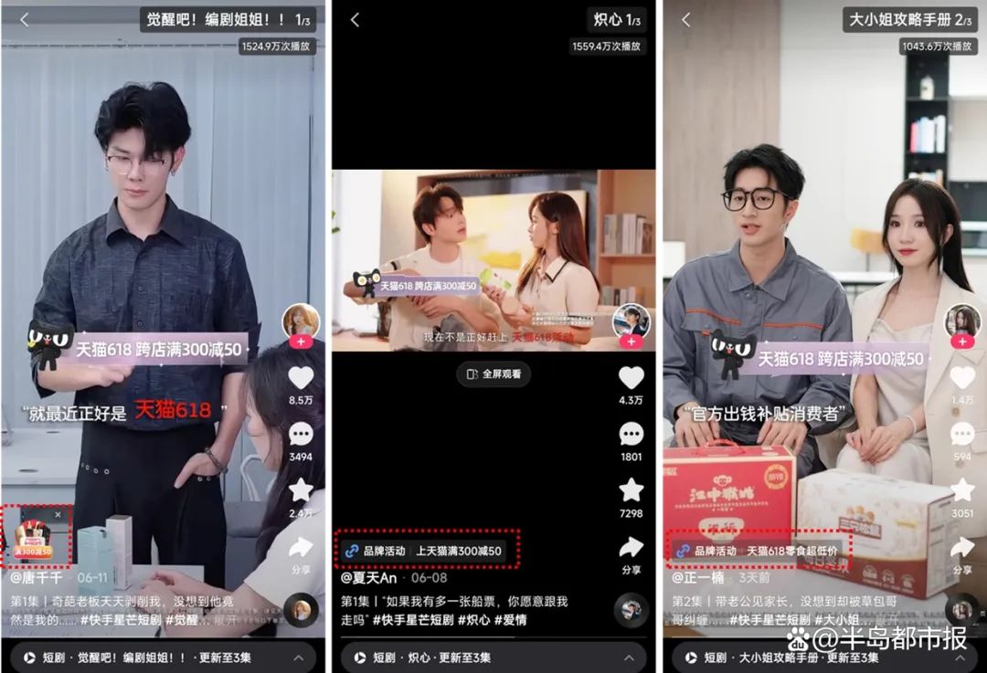 首先是平台之間的合作與遷移。最明顯的是去年選擇快手,今年選擇紅果的天貓。天貓去年整個618營銷期間與快手展開大規模合作,獨家冠名22部精品短劇上線快手,通過劇情植入和PLC掛載直通品牌賣場。截至618收官,合計曝光量達到4億。