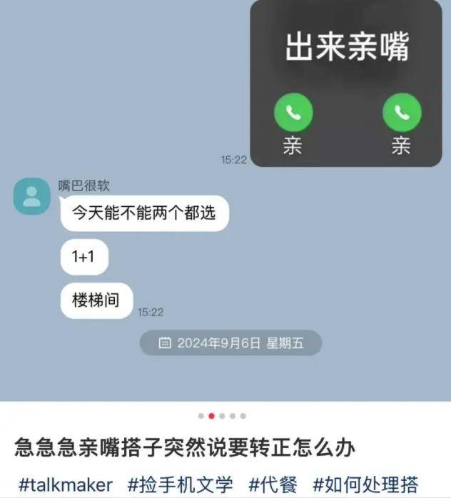 而拼好抱,也只是這類服務的入門級「產品」,再深入一些,還有親嘴搭子服務,顧名思義,即通過同樣的方式,在社交媒體上,下單找理想型的異性接吻。