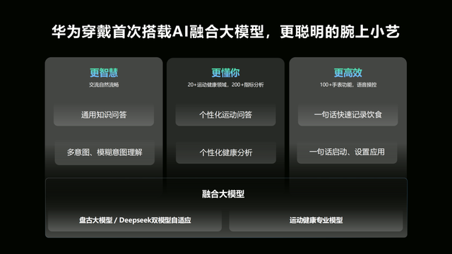 這種背景下,腕上健康還能怎麼進化呢?華為手錶率先進入了鴻蒙AI時代,華為WATCH 5首發搭載融合大模型,帶來了最強最智慧的健康穿戴產品,採用端、軟、雲協同的全新智慧架構,給腕上健康帶來了強有力的AI支撐。