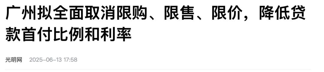 所以這兩天廣州商務局出台了新規,目前在徵求意見階段,簡單説,就是取消一切對於樓市的限購限售限價措施。
