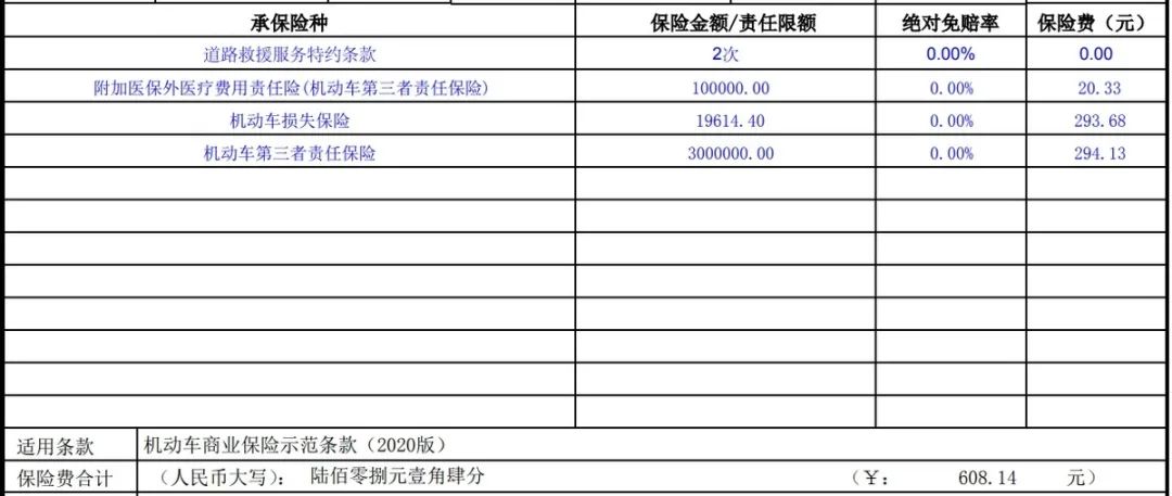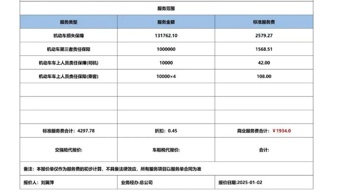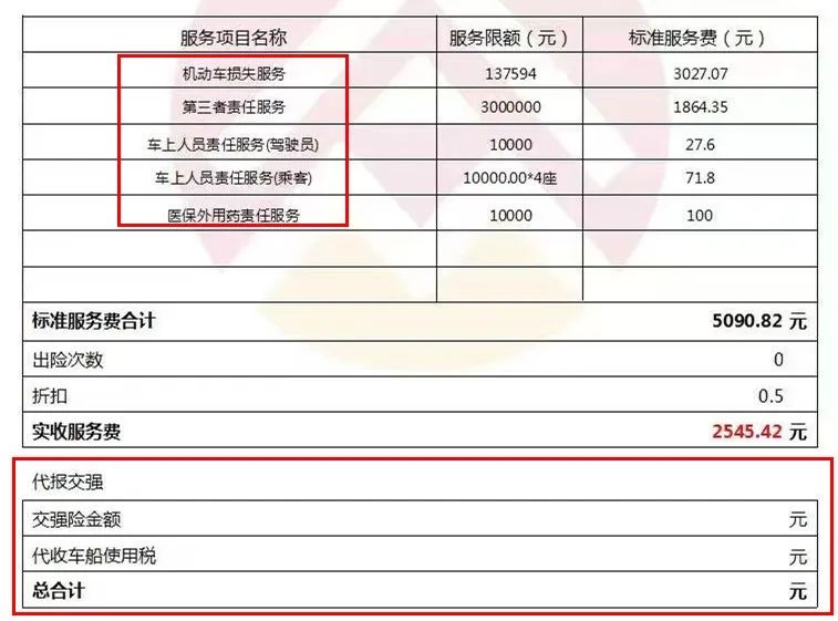 統籌車險本身並不是車險,所以單子上的商業險項目完全不敢出現險種相關的字樣,只能用“服務”、“保障”來打擦邊球。