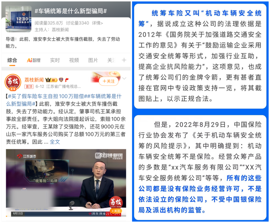 據説還有個正式名稱叫:機動車輛安全統籌,起源於2012年,當時的歷史背景是運輸公司為了提高抗風險能力,開始自己做保險。對於營運車輛來説,正規的保險費用很貴,而如果由大型運輸公司來做,且只面向掛靠在自己公司的車輛,不僅費用低,還均攤了風險,大家每年交的費用也能支付偶然的事故賠償。