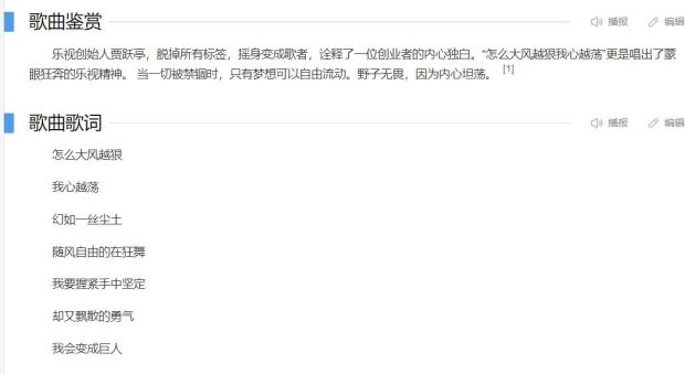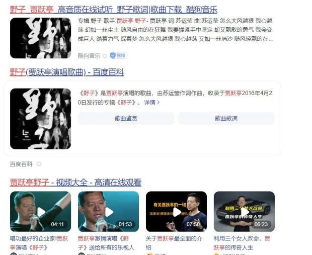 百度百科都被改了:《野子》是賈躍亭演唱的歌曲,由蘇運瑩作詞作曲,收錄於賈躍亭2016年4月20日發行的專輯《野子》。