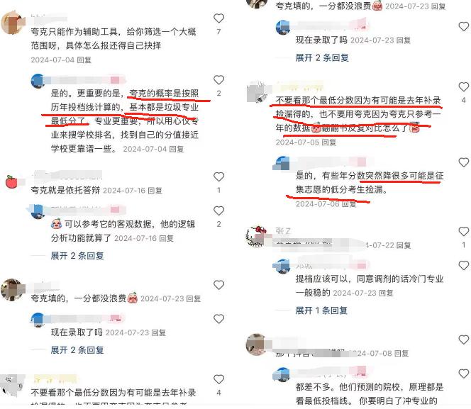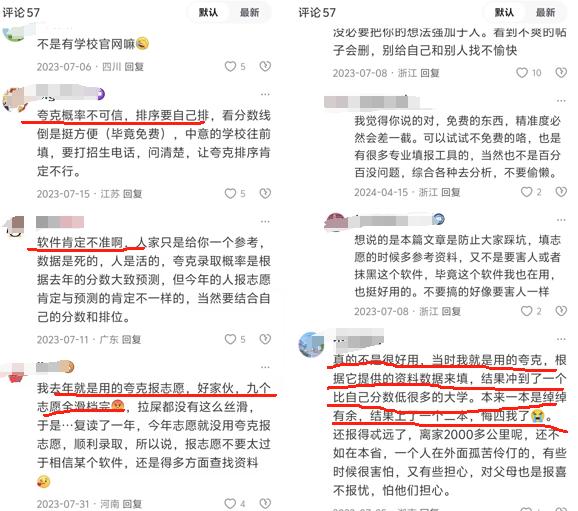 在更早的2023年,被影響的人就更多了。“夸克不可信”“志願滑檔”“一本的分數卻報了二本大學”“非常後悔”。
