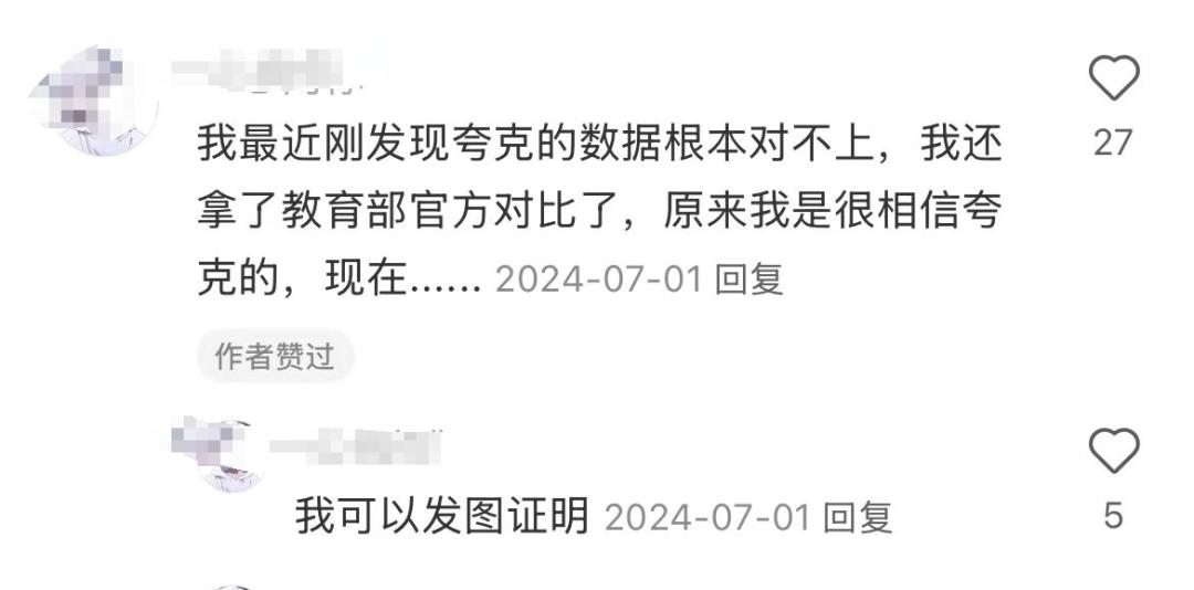 例如,在社交平台上就有人發現夸克高考的數據跟官方數據對不上。