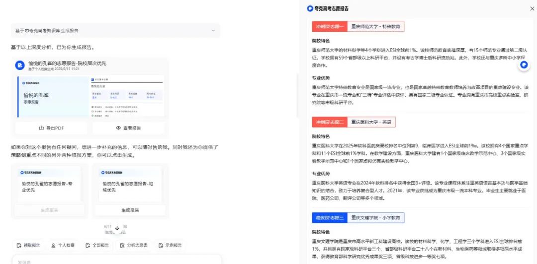 在社交媒體上,無論是考生、高考志願填報專家、AI大模型負責人,越來越多的人正在形成共識:雖然AI志願報告已經到達了一定的專業水準,但是不能完全依靠AI做出志願決定,更多的還是要靠考生自己和家長綜合商量做出決定。