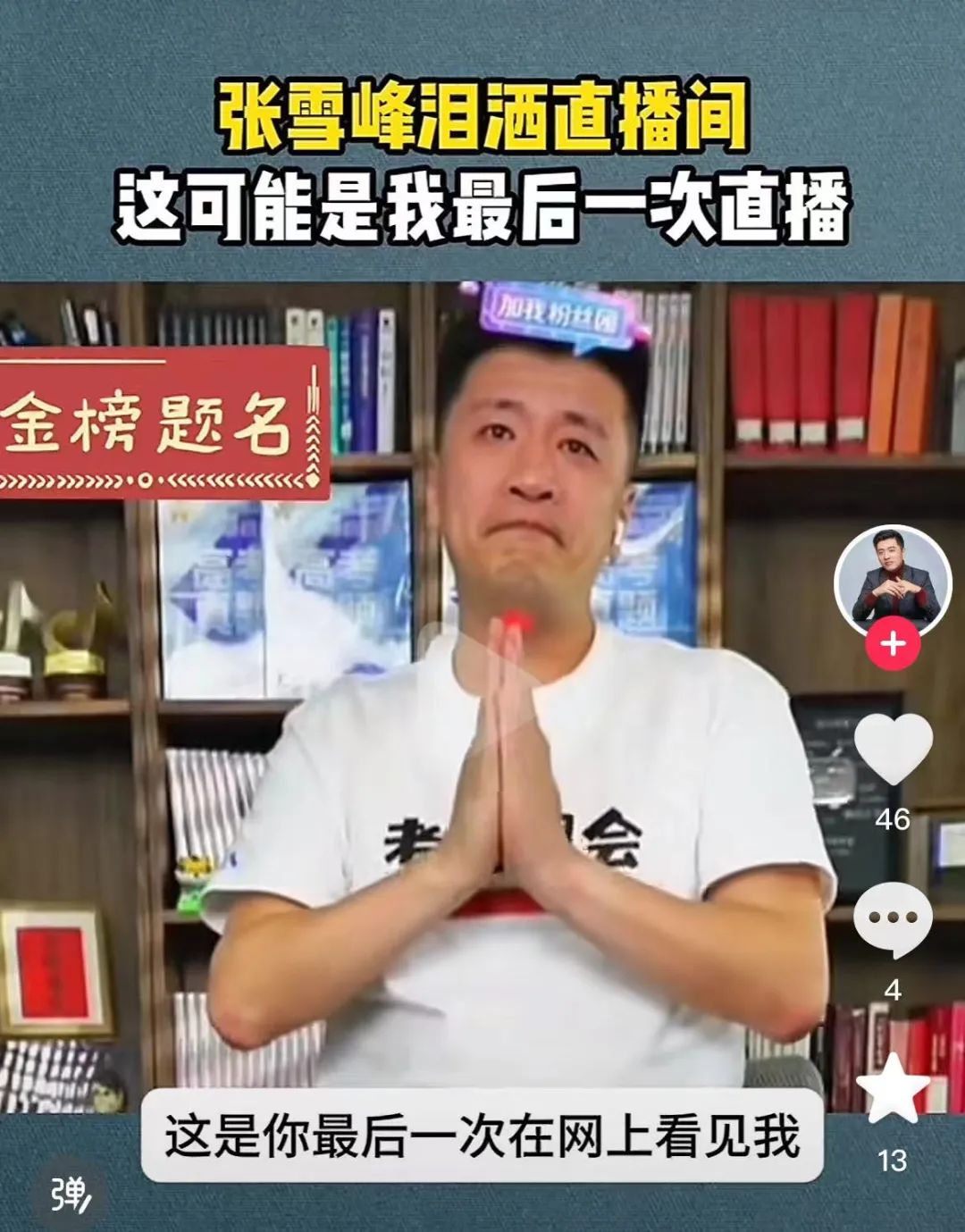 先是前幾天,張雪峯因“在直播間含淚退出”登上熱搜。視頻中,他眼含熱淚,跟觀眾坦誠“動了太多人的蛋糕”“這可能是你最後一次在網上見到我”“我真的已經盡力了”“張雪峯沒有對不起任何人”。