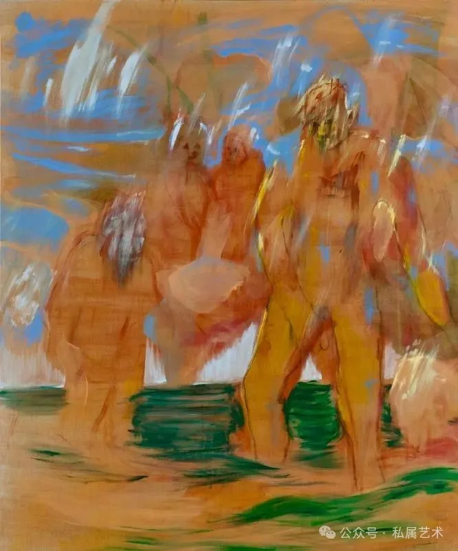 第三,她的繪畫核心依然是Z世代的人,但不是現實中的人,而是抽象的人,但又都分明不是,像是虛擬的人,就像手機微信在聯繫的人,可能是語音,可能是漢字,可能是外語,可能是視頻裏説話的人,有時可能是方言,他們就是這個時代的人,又分明不是人,或是AI人、機器人、騙子,或有一點人味而已,反正畫得不是完整的人,這就是她對這個時代人的表現,跟以往時代的人印象完全不一樣,對這一代人這一切似乎都很正常,若要是碰到農耕時代的人,還以為畫裏碰到的是鬼神仙神話呢。