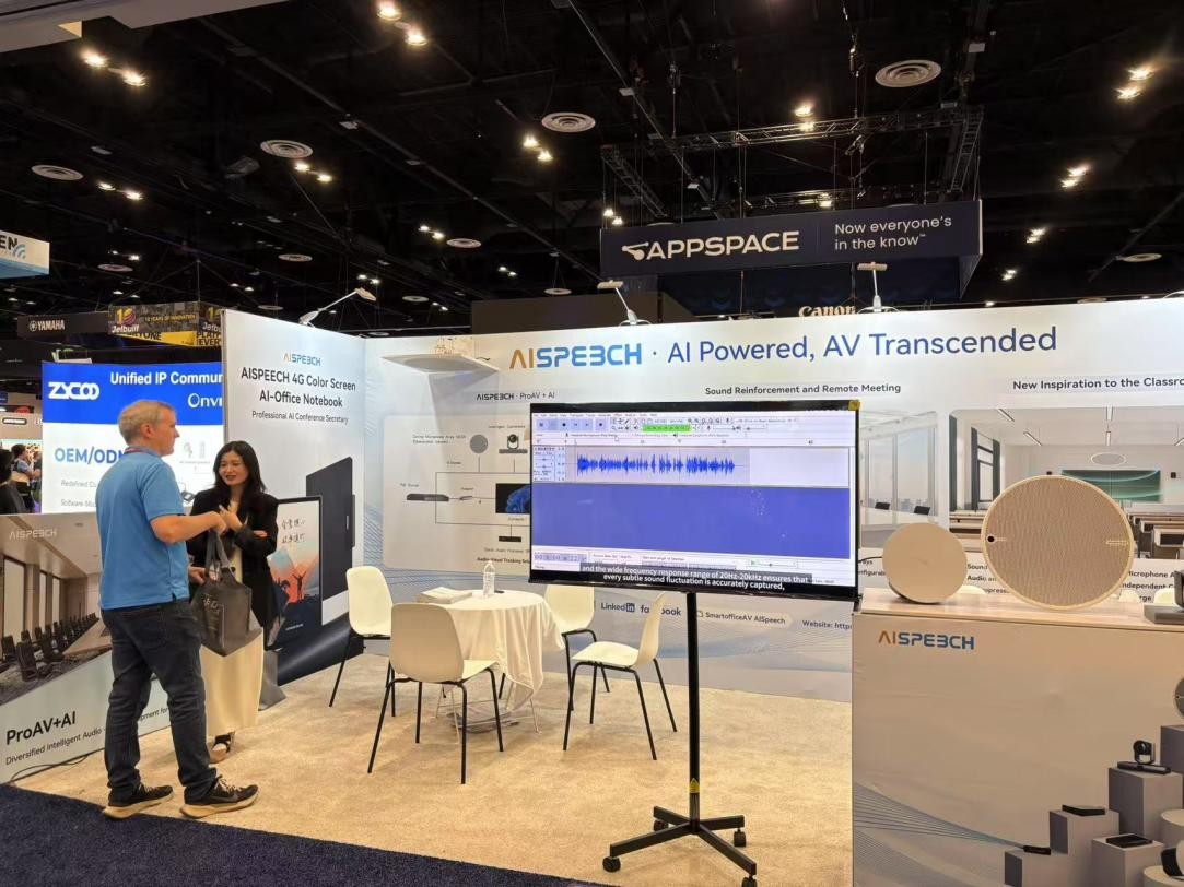 2025年6月11日至13日,思必馳(AISpeech)攜最新吸頂麥克風產品及智能會議解決方案驚豔亮相2025年美國InfoComm展覽會(InfoComm USA 2025 展位號 4682),向全球觀眾展示其在專業視聽(Pro AV)領域的創新突破。作為北美規模最大、最具影響力的專業視聽技術盛會,InfoComm 2025聚焦投影顯示、智能會議、虛擬拍攝等前沿技術。本次展會以"Everything/Everyone Pro AV is at InfoComm"為主題,在奧蘭多會展中心盛大開幕。展會匯聚了來自全球26個國家的800餘家頂尖企業,吸引了超過3萬名專業觀眾到場參觀。作為中國"Pro AV+AI"領域的代表企業之一,思必馳成為本屆展會備受矚目的焦點。