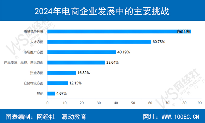 報告認為,在企業發展中的主要挑戰按順序有市場競爭環境、人才、市場推廣、產品供應鏈等方面。人才問題多年來一直是電商企業面對第一挑戰,人才優勢也是杭州這個電商之都能夠吸引全國優秀電商企業入駐的主要原因。但2024年市場競爭環境成為企業的首要挑戰,當下,卷生卷死的市場環境給企業帶來了前所未有的壓力。