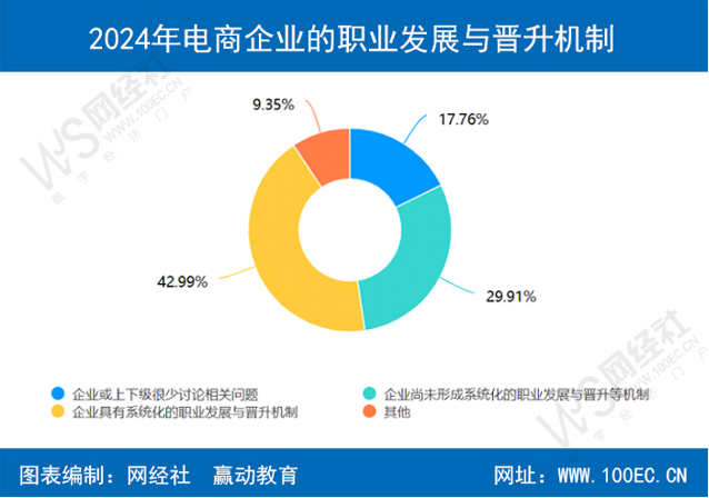 報告顯示,企業具有系統化的職業發與晉升機制的佔比42.99%,比2023年53%的數據有所下降。被調研企業樣本中,大部分企業具有系統化的職業發與晉升機制,這能夠激發員工潛能,提高工作動力,促進人才內部成長,降低流失率,構建穩定高效的企業組織。