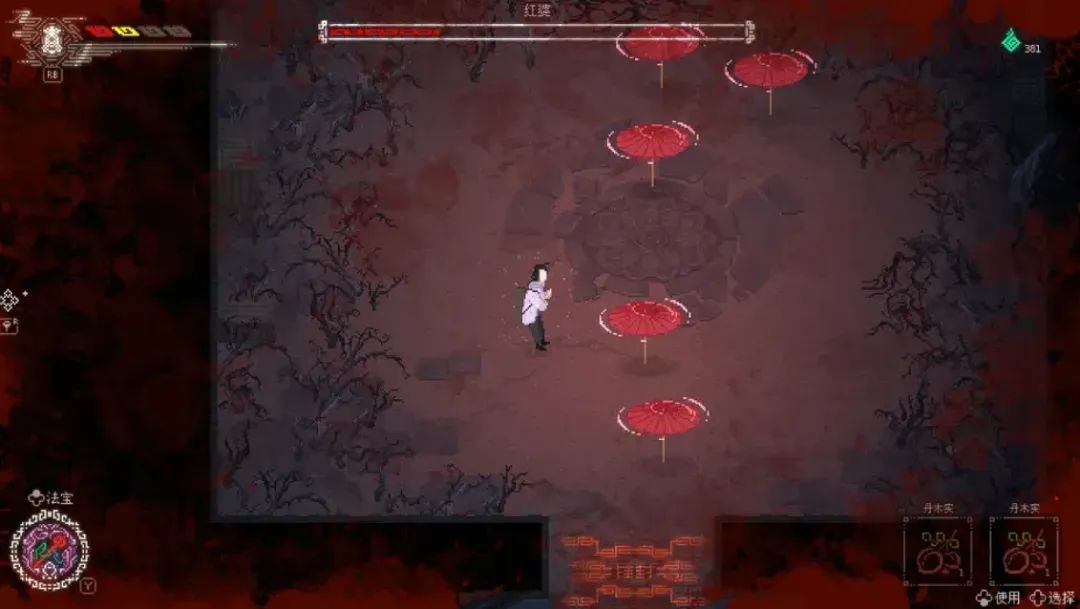 首先是,遊戲設計了一個集格擋、護盾、閃避、精力條於一體的戰鬥系統,但手感並不流暢,主角唯一的武器鈴鐺也很難做出打擊感。更何況,遊戲初期的數值設計也做崩了。主角只有4滴血,初期沒有閃避和護盾,面對BOSS拼盡全力難以戰勝。加上坐土地祠傳送的機制,乾脆讓很多玩家聯想到魂遊,還是一款手感粗糙、設計稚嫩的“中式魂遊”。