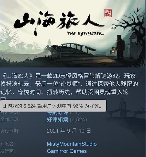 作為獨立遊戲而言,《山海旅人2》及其背後的團隊雲山小雨工作室,曾有着很高的起點。《山海旅人》初代於2021年發售,憑藉國風志怪的背景、獨特的水墨像素風,和讓人眼前一亮的逆夢玩法,贏得了Steam上96%的好評率。