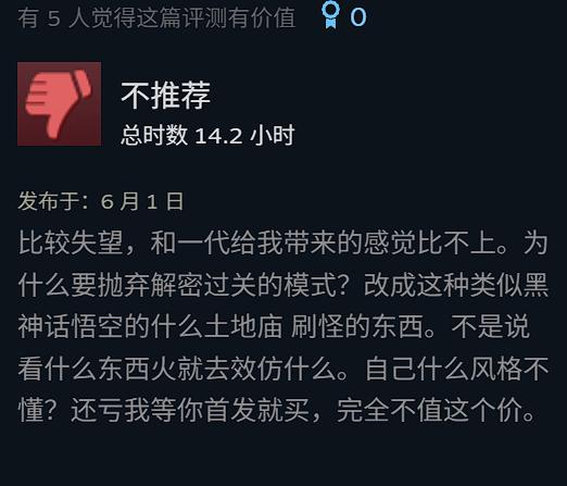 由於遊戲類型的改變,遊戲一代直擊人心的逆夢玩法,無論存在感還是推理設計,都被大幅弱化,淪為流程中的點綴。在很多老玩家看來,等於直接放棄了系列的靈魂,對於一款憑藉劇情打響招牌的遊戲而言,這種評價無疑是致命的。