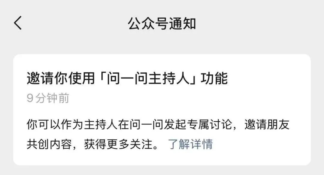 根據官方介紹,“問一問主持人”是微信內的私域共創工具,你可以向粉絲和社羣發起問一問討論,邀請他們共創內容,在微信各場景獲得豐富的曝光機會,放大賬號影響力。