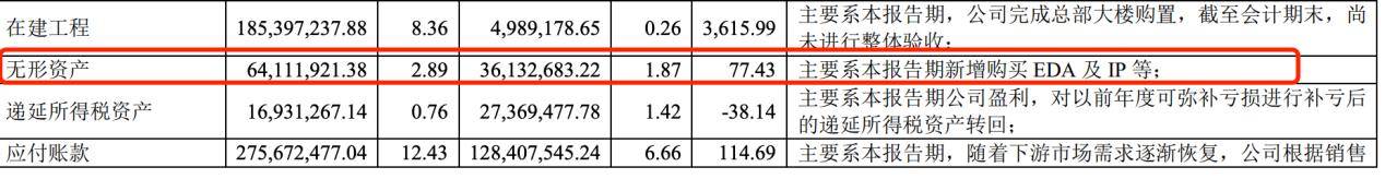與此同時,國內的芯片設計企業為此也要付出更多成本。2024年,瑞芯微長期應付款項同比增加了294.58%,普冉股份“無形資產”同比變動增加77%,炬芯科技“其他應付款”中期末金額較上期末增加了217%,這些支出變動均與採購EDA工具及IP等相關。