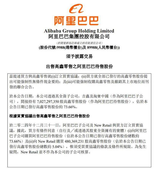 圖源:阿里巴巴公告