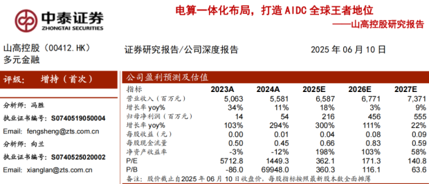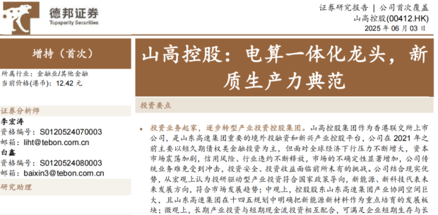德邦證券則指出,山高控股是電算一體化龍頭,新質生產力的典範。