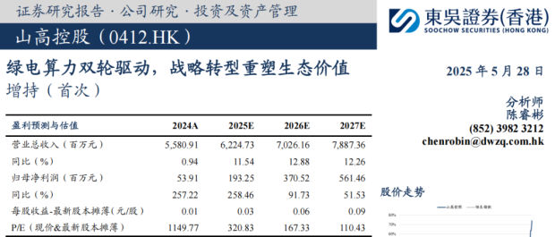 正如東吳證券(香港)研報中所説的,隨着算力需求的持續爆發,山高控股有望通過“綠電降本+算力增值”雙重紅利釋放價值。