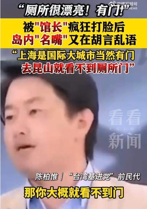 不過,台灣媒體回應很快,台媒嘉賓陳柏惟在第二天的節目中説:“上海是國際大城市當然有門,去崑山就看不到廁所門了”。