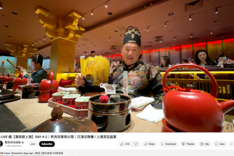 ▲館長與汪小菲一起吃飯聊天,直播同時在線達到45萬人,然後就被限流了