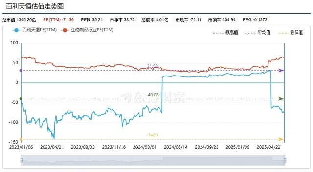 從資本市場的角度觀察,百利天恆的股價目前仍處於高位,截至2025年6月13日收盤,公司總市值仍高達1305億元。但是,值得注意的是,東方財富數據顯示,其市銷率(TTM)目前已超過300倍,估值水平明顯高於行業平均。