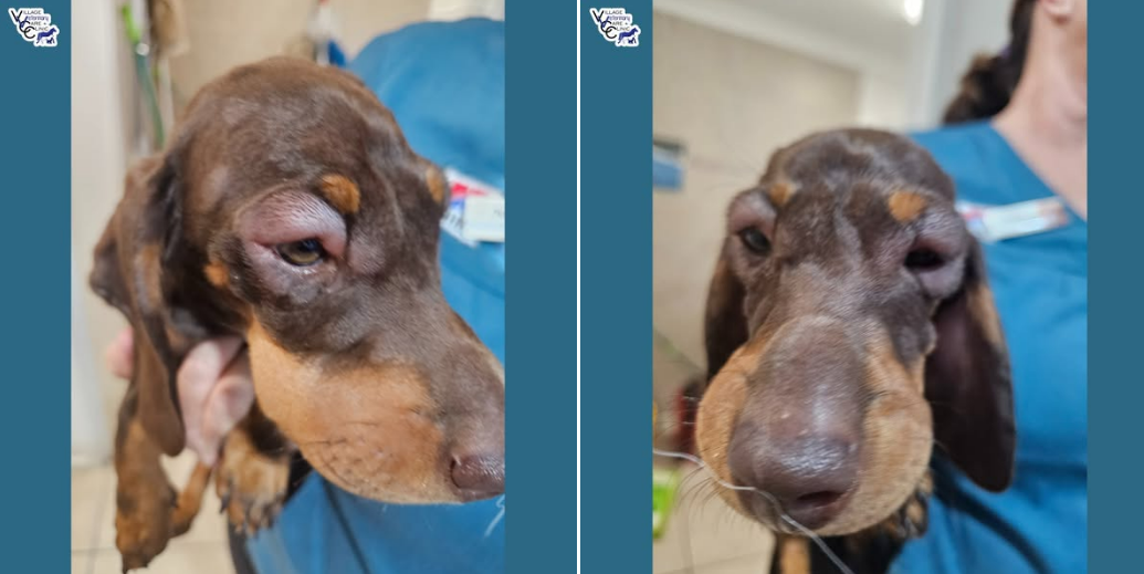 這隻小狗被紅火蟻咬了之後也過敏了,被緊急送往寵物醫院。圖源:Village Veterinary Clinic