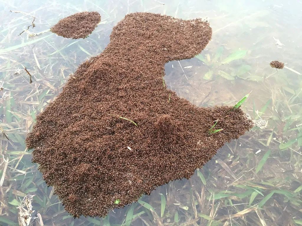 在下暴雨和發洪水的時候,有的人也曾被形成筏子的紅火蟻蜇傷。