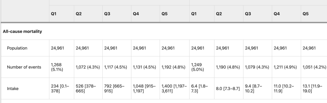 在大約10年的隨訪期間,記錄了5780例死亡、6920 例心血管疾病、3421例2 型糖尿病、9441例癌症、12945例呼吸系統疾病和1921例神經退行性疾病。