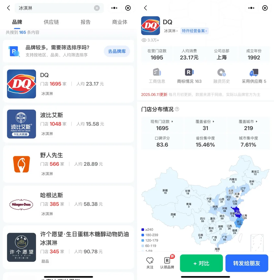 另一方面,國內市場高端冰淇淋賽道的競爭正在日益激烈。窄門餐眼數據顯示,哈根達斯國內門店的客單價約為58.38元。作為主要競對,DQ的客單價僅為23.17元,不足前者一半。而DQ目前在國內擁有近1700家門店,且仍在保持較大規模的擴張。無論是性價比還是市佔率上,都更勝一籌。