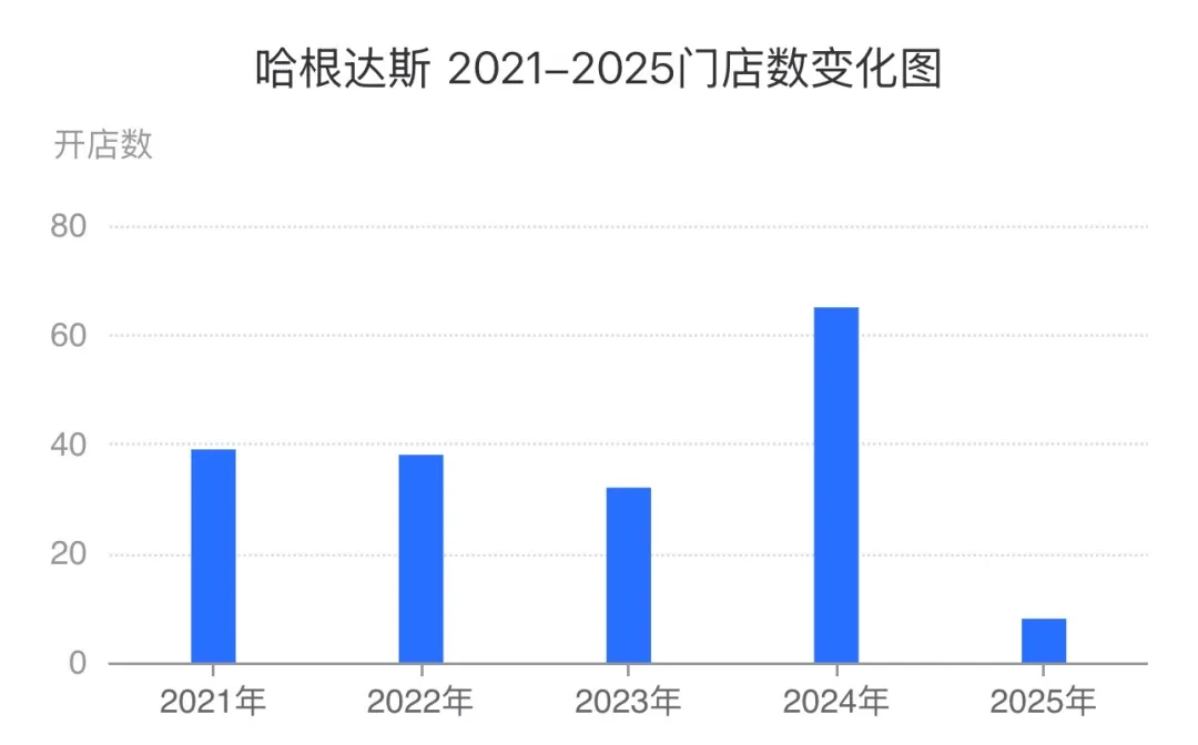 這大概與哈根達斯的開店選址策略息息相關。窄門餐眼數據顯示,哈根達斯近90%的門店都分佈在一線、新一線和二線城市,且七成以上都為商場店。2025年以來哈根達斯顯著放緩了開店拓張速度,累計僅新開8家門店。