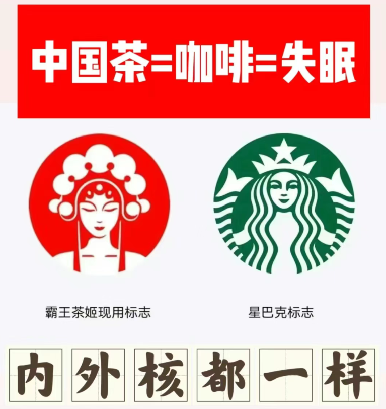 早期,霸王茶姬logo風格與茶顏悦色相似,而2021年品牌升級後,霸王茶姬的logo設計又跟星巴克“撞款”。