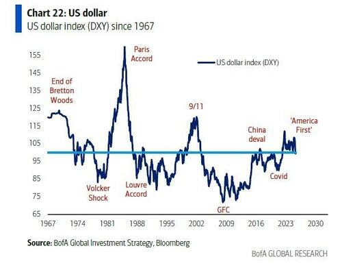 1. 美元指數構成就是六種貨幣,歐元、日元、英鎊佔比分別是57.6%、13.6%、11.9%。還有加元8.4%,瑞典克朗4.2%,瑞士法郎3.4%。亞洲經濟崛起勢頭明顯,如果只用30年GDP不增加的日本經濟來代表,是極端錯誤的。BCA Research的首席策略師Marko Papic表示,美元可能會在五年內暴跌 25%至50%,因為亞洲經濟體紛紛拋棄美元。