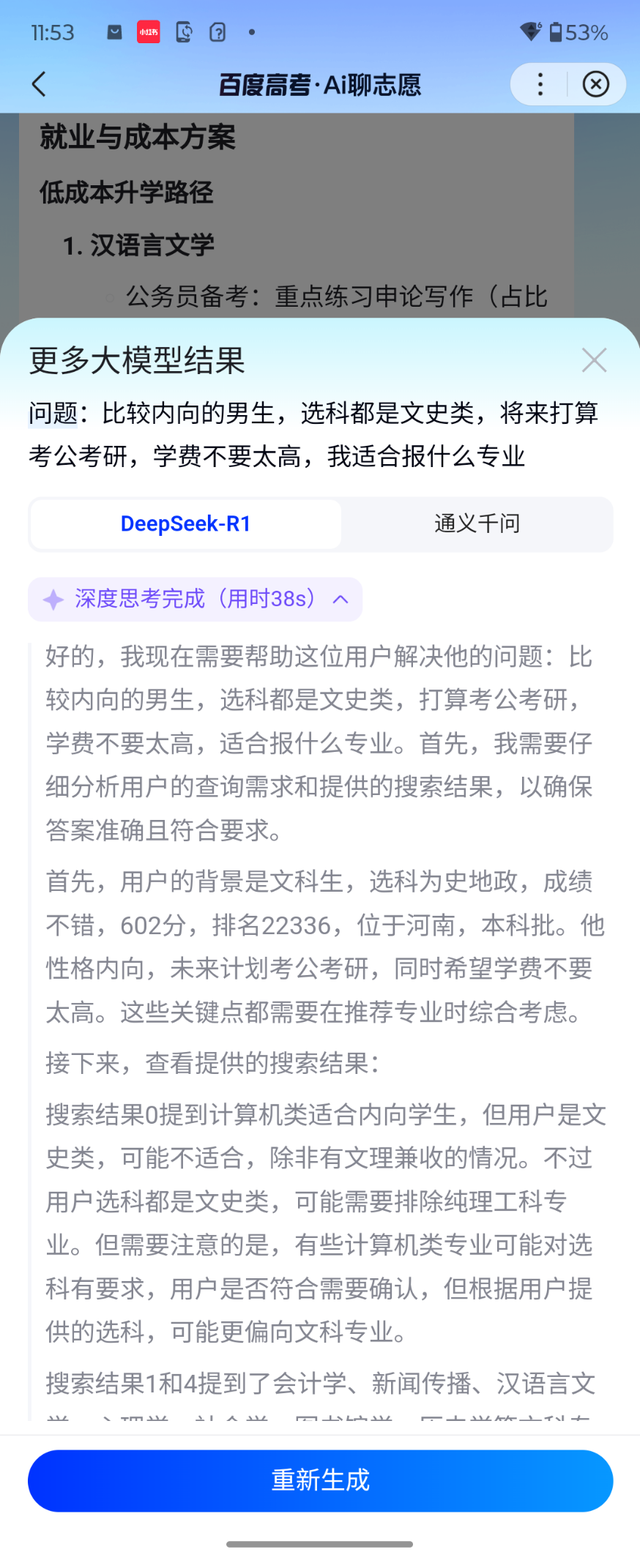 無論是對某所院校的招生政策存在疑惑,還是想了解某個專業的就業前景,抑或糾結不同院校的特色優勢,除了百度自家的文心大模型,還支持DeepSeek-R1等多個大模型的智慧匯聚,為考生提供多角度、深層次的解答,幫助考生做出更加明智的報考決策。