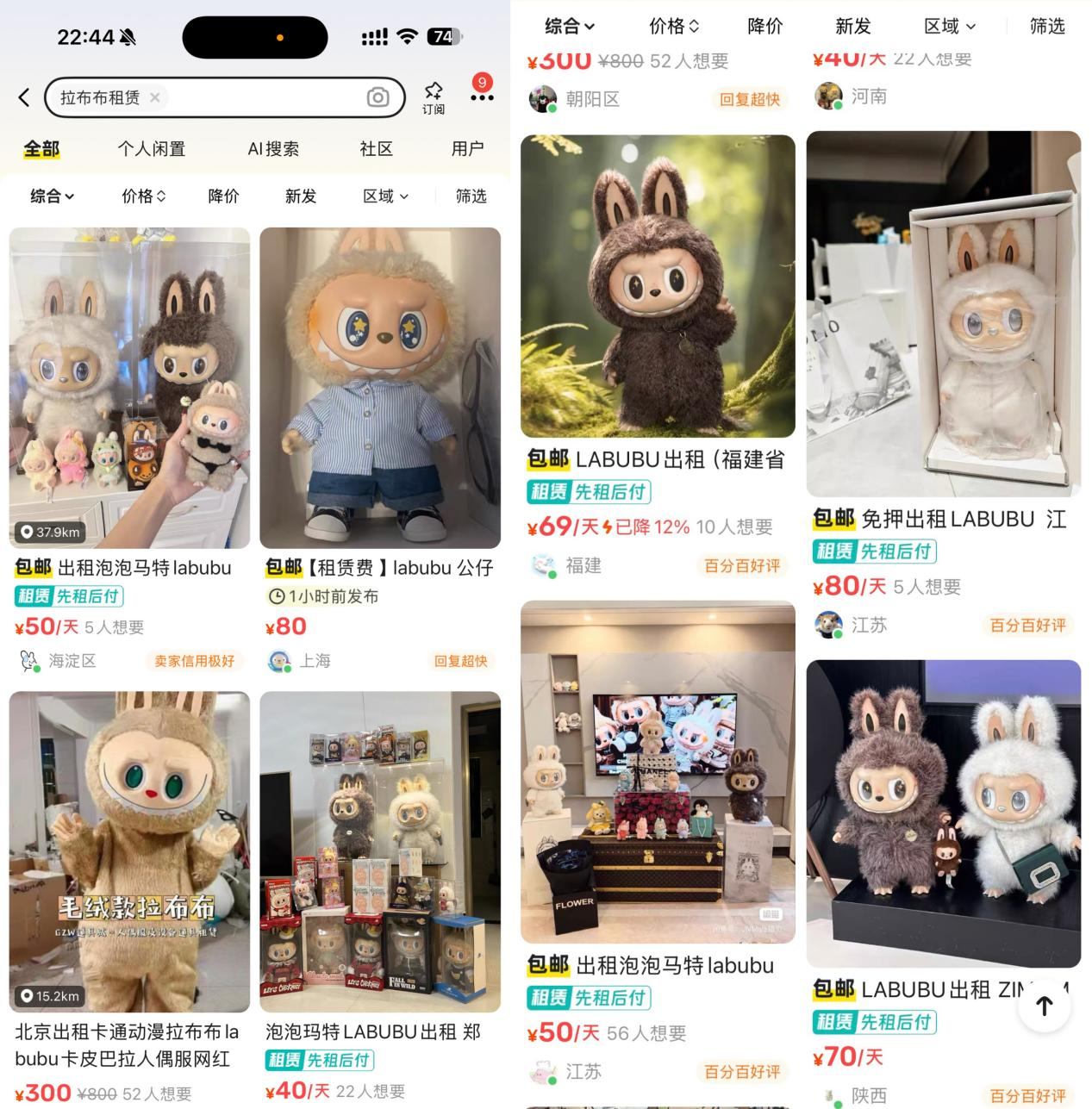這些創業者善用平台工具實現精準運營:通過 “閒魚指數” 分析熱門搜索詞,利用 “智能定價” 功能動態調整租金,藉助 “魚塘” 社羣精準觸達目標用户。上海創業者張先生組建 10 人團隊,通過批量租賃 LABUBU 及周邊產品,年營收突破 500 萬元,其經驗被收錄進閒魚官方創業案例庫。