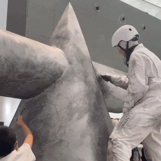 有一位實驗藝術系的畢業生,把一個巨大的石膏體搬進了展廳,不停地在上面練習着美術生最熟悉的排線,路過的觀眾也可以加入其中。