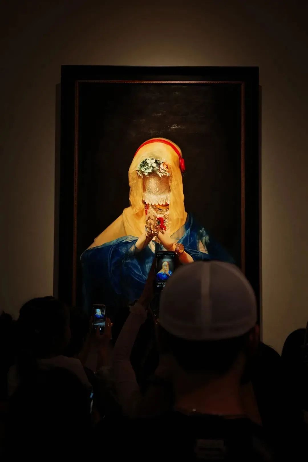 當慕名而來的觀眾們走近它,看到這幅畫的諸多細節,這廉價材質拼湊成的不合時宜的高貴姿態,每個被資本做局的人都心領神會。